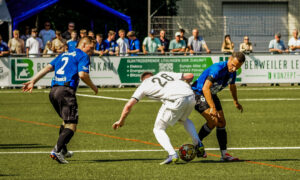 Ein Resultat unter der Rubrik Arbeitssieg verbuchte Spvgg-Coach Benny Weiler. „Spielerisch war es überhaupt kein gutes Spiel und Euren hatte sogar mehr Spielanteile als wir. Trotzdem waren wir effektiv und haben unsere Chancen genutzt. Das war das wichtigste für uns.“ Ohne drei Leistungsträger tat sich der Tabellenzweite schwer und verwaltete nach der frühen 2:0-Führung das Ergebnis nur noch. Nach Vorlage von Mikel Picko brachte Weiler den Favoriten mit einem Fernschuss aus 20 Metern in Front, zehn Minuten später (29.) netzte Picko nach Vorarbeit von Manfred Metz zum zweitenmal.