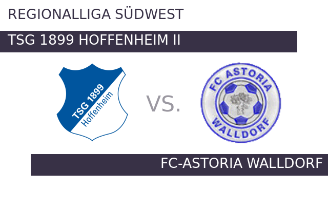 Am Freitag trifft die Zweitvertretung von TSG 1899 Hoffenheim auf FC-Astoria Walldorf. Am letzten Spieltag nahm 1899 Hoffenheim II gegen die Kickers Offenbach die erste Niederlage in dieser Spielzeit hin. FCA Walldorf siegte im letzten Spiel gegen VfR Wormatia 08 Worms mit 1:0 und liegt mit drei Punkten im Mittelfeld der Tabelle.
