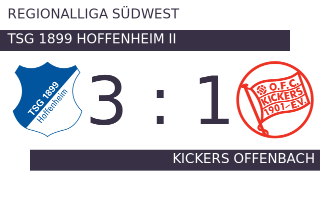 TSG 1899 Hoffenheim II stellte mit dem 1:0 in der neunten Minute die Weichen auf Sieg. Zur Pause hatte 1899 Hoffenheim II eine hauchdünne Führung inne. In der 73. Minute verhinderte die Hintermannschaft von TSG 1899 Hoffenheim II den Gegentreffer von Offenbach nicht, sodass die Partie nun wieder ausgeglichen war. TSG 1899 II gelang der Führungstreffer in der Nachspielzeit (90.). In der 90. Minute brachte TSG 1899 Hoffenheim II das Netz zum Zappeln. Am Schluss fuhr 1899 Hoffenheim II gegen Offenbach auf eigenem Platz einen Sieg ein.