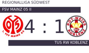Die Zweitvertretung von Mainz 05 kam gegen TuS RW Koblenz zu einem klaren 4:1-Erfolg. Pflichtgemäß strich der FSV II gegen TuS RW Koblenz drei Zähler ein.