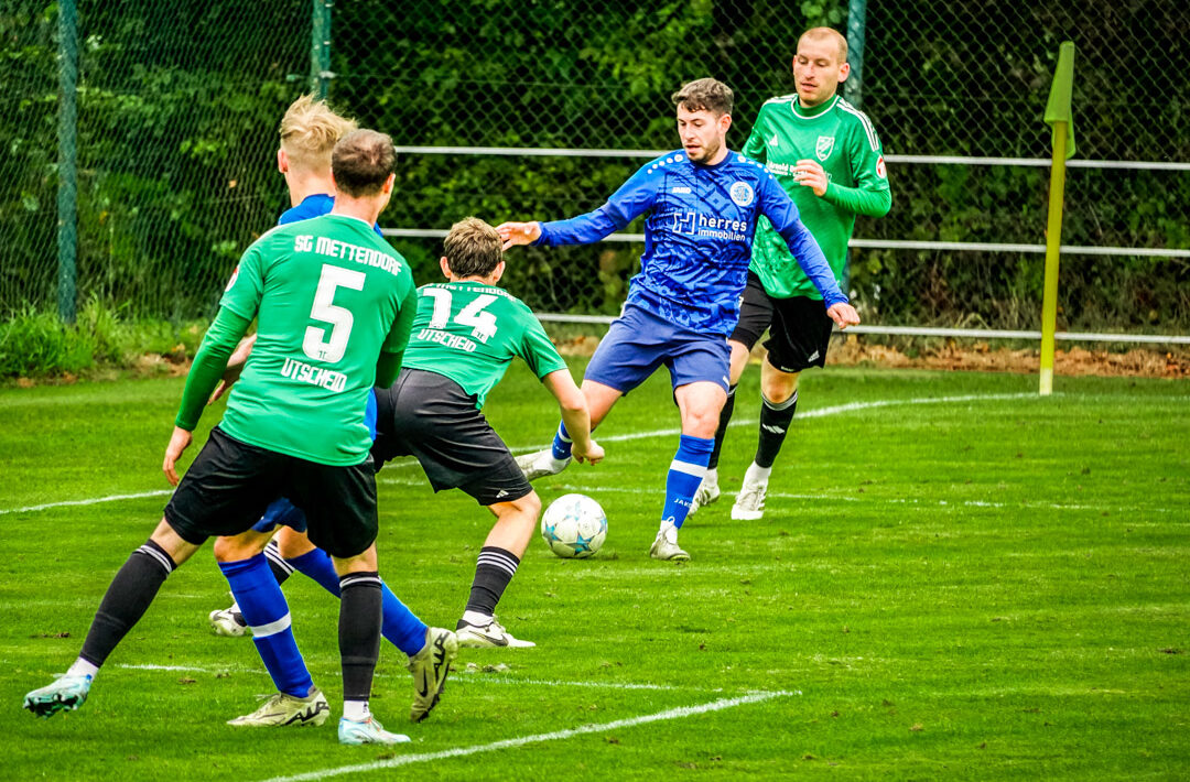 Es war zugleich der vierte Sieg in Folge für die Westeifel-SG, die sich am Samstag einem kompakten und kämpferisch starken Gegner zu erwehren hatte. Es war das erwartet umkämpfte, intensive, aber auch gutklassige Derby zweier starker Bezirksligateams, das am Ende mit der SG Daleiden/Arzfeld/Dasburg-Dahnen einen verdienten Sieger fand. Vor 230 Zuschauern bei teilweise strömendem Regen hielten sich beide Mannschaften nicht lange bei der Vorrede auf und gingen beizeiten die Wege nach vorn. Die Hausherren zeigten sich zunächst spielfreudig, angriffslustig und kamen mehrere Male gefährlich vor das Tor des wiederum stark parierenden Utscheider Torwarts Oliver Fuchs, der seinem Ruf als Elfmeter-Killer ein weiteres Mal gerecht wurde, als der Routinier in der 80. Minute beim Stand von 2:1 einen Foulelfmeter von Joschka Trenz entschärfte. Eine gute Möglichkeit in Führung zu gehen, hatten die Gäste aus dem benachbarten Utscheid und Mettendorf, als Benedict Masselter allein vor Daleidens Keeper Florian Moos auftauchte, der beim Schlenzer des Kapitäns aber eine Hand noch dran hatte. „Es wäre verdammt schwierig geworden, wenn Utscheid in jener Situation in Führung gegangen wäre. Denn sie standen sehr kompakt und haben immer wieder gefährliche Umschaltaktionen gestartet“, sah Moos einen über weite Strecken ebenbürtigen Gegner. So sei der Führungstreffer von Jakob Lempges eine Art wichtiger Dosenöffner gewesen. Johannes Morgens hatte sich im Mittelfeld behauptet, war 30 Meter mit dem Ball marschiert, ehe der Neuzugang von der SG Prümer Land einen Pass auf Musa Bah spielte und dieser uneigennützig den mitgelaufenen Jakob Lempges bediente, der aus knapp 16 Metern ins lange Eck traf – 1:0 (44.). „Wir haben uns nicht vom Rückstand, der zugegebenermaßen zu einem äußerst schlechten Zeitpunkt fiel, beeindrucken lassen und zielstrebig weitergespielt. Der Ausgleich war Lohn der intensiven Offensivbemühungen meiner Mannschaft“, stellte Utscheids Trainer Rainer Müller fest. So hatte Torjäger Max Kolbet nach Flanke von Masselter in der 60. Minute mit seinem zwölften Saisontreffer zum verdienten Ausgleich getroffen – 1:1 (60.). Anschließend ließen Kolbet und Masselter weitere gute Einschussmöglichkeiten für die kämpferisch und läuferisch überragenden Gäste aus. Die Hausherren brachten mit Trenz, Matthias Ewerz und Dennis Ewen jede Menge Offensivpower ins Spiel und wurden prompt belohnt. Weil der Druck immens wurde und Utscheid sich zu weit in die eigene Hälfte drängen ließ, war die erneute Führung folgerichtig: Nach dem Ewerz in der Szene davor mit einem wuchtigen Kopfball an der Querlatte scheiterte, war Ewen geistesgegenwärtig im Nachsetzen zur Stelle und drückte die Kugel per Abstauber in die Maschen – 2:1 (74.). Den Sack sechs Minuten später hätte Trenz endgültig zuschnüren können, doch der eminent schnelle Tiefenspieler der Isleker scheiterte am guten Utscheider Keeper Fuchs, der rechtzeitig in die von ihm linke Ecke abgetaucht war und seinen bereits zweiten Elfmeter in der laufenden Saison parierte (80.). Während Daleiden im Anschluss weiter am dritten Tor arbeitete, sprang für die Gäste bis auf zwei Eckbällen nichts Zwingendes mehr heraus. Daleidens Spielertrainer Florian Moos kommentierte, dass es „ein intensives und auf gutem Niveau stehendes Derby war. Man hat zu jeder Sekunde den Derbycharakter gespürt. Wir mussten unglaublich viel Laufarbeit verrichten gegen eine gute Utscheider Mannschaft, doch der Sieg ist, denke ich, verdient. Wir hatten vornehmlich in der ersten Halbzeit spielerisch gute Aktionen gehabt und viele Torchancen kreiert, doch wir hatten keine gute Boxbesetzung. Mit den Wechseln zur zweiten Halbzeit kam deutlich mehr Energie und Zug in die Partie.“ Utscheids Coach Rainer Müller freilich war nur mit dem Ergebnis nicht zufrieden: „Es war ein respektabler, guter Auftritt meiner Mannschaft in einem packenden Derby. Beide haben sich nichts geschenkt auf einer fairen sportlichen Art und Weise. Das Derby blieb bis zur letzten Sekunde offen, wir haben eine sehr engagierte Leistung abgeliefert in kämpferischer wie in spielerischer Hinsicht. Der Sieg von Daleiden geht in Ordnung, weil sie die qualitativ besseren Chancen hatten. Andersherum hätten wir auch einen Punkt verdient gehabt, weil wir beim Tabellenführer eine über weite Strecken starke Leistung gezeigt haben.“
