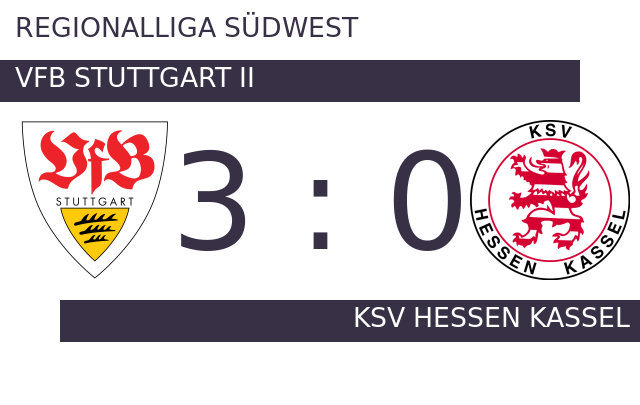 KSV Hessen Kassel konnte der Zweitvertretung des VfB Stuttgart nicht viel entgegensetzen und verlor das Spiel mit 0:3. Stuttgart II ließ keine Zweifel an der Ausgangslage aufkommen und feierte gegen Hessen Kassel einen klaren Erfolg. Im Hinspiel hatte KSV Hessen das bessere Ende für sich reklamiert und einen 2:0-Sieg geholt.