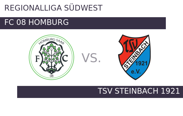 FC 08 Homburg fordert im Topspiel TSV Steinbach 1921 heraus. FC Homburg kam zuletzt gegen den SSV Ulm 1846 zu einem 0:0-Unentschieden. Steinbach gewann das letzte Spiel souverän mit 3:0 gegen TSG Balingen und muss sich deshalb nicht verstecken. TSV verbuchte im Hinspiel einen Erfolg und brachte einen 3:1-Sieg zustande.