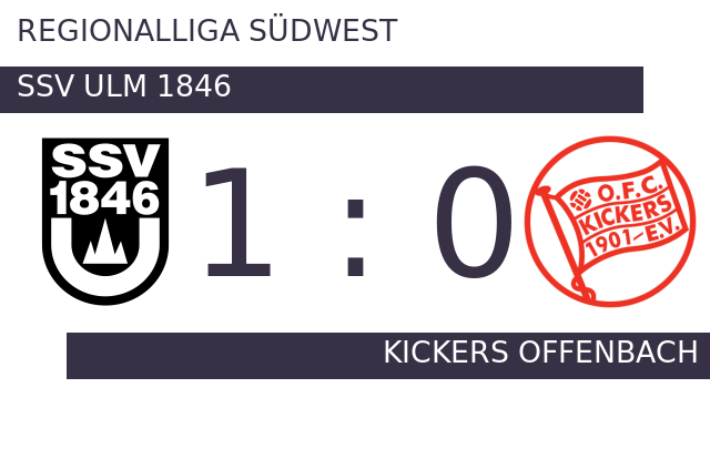 Durch ein 1:0 holte sich der SSV Ulm 1846 in der Partie gegen die Kickers Offenbach drei Punkte. Ein Spaziergang war der Erfolg am Ende jedoch nicht für den SSV Ulm 1848. Mit der Unterstützung des heimischen Publikums im Rücken war es Offenbach gelungen, das Hinspiel mit 3:1 für sich zu entscheiden.