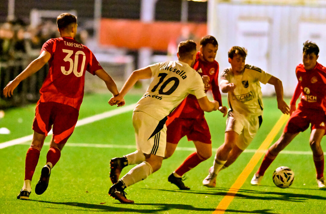 Vor 500 Zuschauern im Hexenkessel Trimmelter Hof gewann das Team von Patrick Zöllner knapp, aber verdient mit 2:1. Nach acht Siegen in Folge kassierte die Mosella wieder eine Niederlage – eine mit Folgen. Denn mit jetzt elf Punkten Rückstand auf den unangefochtenen Primus aus Trier-Tarforst sind die Chancen, direkt wieder in die Rheinlandliga aufzusteigen, rein theoretischer Natur. Die neue Konstellation bewertete dann auch Schweichs Trainer Thomas Schleimer so: „Spätestens ab jetzt brauchen wir nicht mehr auf Platz eins zu schauen, wollen vielmehr in den zwei verbleibenden Partien in diesem Kalenderjahr den zweiten Platz absichern.“ Das Topspiel nahm bereits früh an Fahrt auf. Nachdem Luis Böhme von Philipp Grundmann gefoult worden war, verwandelte Benedikt Decker den fälligen Strafstoß unaufgeregt zum 1:0 (4.). Doch die Gäste vom Winzerkeller hatten nur sechs Minuten später ihre Antwort parat. Nach einer Ecke von Stephan Schleimer war Joshua Rodrigues stark eingelaufen und vollendete per Kopf zum 1:1 (10.). Die Partie stand auf hohem Niveau, inszenierte sich temporeich, war aber auch von zahlreichen Zweikämpfen in der neutralen Zone geprägt. Beide Seiten schenkten sich nichts. Noch in der ersten Halbzeit entschied Fabian Wey die muntere und emotional geführte Spitzenpartie zugunsten des FSV. Eine gut getimte und scharf nach innen gebrachte Flanke verwertete Wey Klasse zum 2:1-Siegtreffer (32.). So richtig dicke Torchancen verzeichneten beide Teams im zweiten Durchgang nicht mehr, da die Defensivreihen exzellent in den Räumen standen und Angriffe schon oft vor dem Sechzehner im Kein erstickten. Schweichs Nico Schäfer hatte noch die beste von ihnen, als er in der 63. Minute nach einem Tempogegenstoß knapp links am Tarforster Gehäuse vorbeischoss. Nach einer schnellen Umschaltaktion hatte FSV-Stürmer Elias Heitkötter die Chance, schon zehn Minuten vorher alles klar zu machen. Der ehemalige Irscher hatte den Ball schon an Bendix Große vorbeigelegt, kam aber nicht am Schweicher Torwart vorbei. FSV-Coach Zöllner zeigte sich dann nach dem Spitzenmatch sehr angetan von der Leistung seiner Mannschaft und befand generell, eine „ausgezeichnete Hinrunde gespielt zu haben. Das Derby war hochklassig, äußerst intensiv und umkämpft. Wir haben jetzt elf Punkte zwischen uns und Schweich gelegt und unsere starken Leistungen einmal mehr bestätigt.Wir haben in der gesamten Hinrunde nur einmal Punkte abgegeben, beim 2:2 gegen Sirzenich – und das auch erst in der letzten Minute. Fußballerisch hatten wir ein bisschen die Nase vorn. Beide Seiten hatten viel Ausfälle zu beklagen. Das ist ein bisschen schade, denn dann wäre es das erwartete Offensivfeuerwerk geworden. Doch ich bin auch so sehr zufrieden mit dem Spiel.“ Zöllners Pendant auf Schweicher Seite, Thomas Schleimer, war demzufolge sehr enttäuscht. „Nicht mit dem Spiel meiner Jungs, sondern vor allem mit dem Ergebnis. „Es war ein relativ chancenarmes Spitzenspiel mit unglaublich viel Tempo. Dem waren auch die vielen Fehlpässe beider Mannschaften geschuldet. Der Sieg von Tarforst ist nicht unverdient, obwohl sie auch nicht viele zwingende Aktionen hatten. Wir haben die Anfangsphase verschlafen, sind mit der ersten Aktion aber wieder drin gewesen. Wir haben nicht enttäuscht, auch eine gute Leistung gezeigt. Leider haben etliche Leistungsträger gefehlt. Um ein Unentschieden zu erreichen, hätten es mehr Konsequenz und Entschlossenheit gebraucht.“