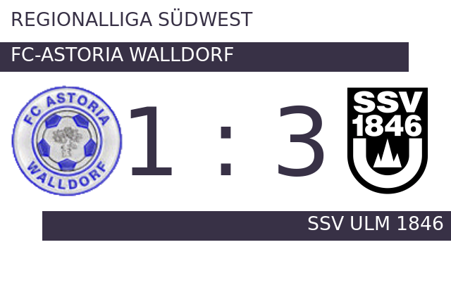 Der SSV erwischte einen Blitzstart ins Spiel. Andreas Ludwig traf in der sechsten Minute zur frühen Führung. Zum psychologisch ungünstigen Zeitpunkt vor der Halbzeit (42.) schoss Lamar Yarbrough einen weiteren Treffer für den Tabellenführer. Es waren die Gäste, die zur Pause eine Führung ihr Eigen nannten. Bei FCA gab es ein neues Gesicht auf dem Platz: Max Hauswirth wurde für Mario Müller eingewechselt. Der Treffer von Max Müller bedeutete nach 54 Minuten vor den 566 Zuschauern den Anschluss für Astoria In der 62. Minute stellte der Gastgeber personell um: Per Doppelwechsel kamen Henry Jon Crosthwaite und Arion Erbe auf den Platz und ersetzten Tim Fahrenholz und Kevin Krüger. Lucas Röser witterte seine Chance und schoss den Ball zum 3:1 für den SSV Ulm 1846 ein (70.). Am Ende punktete der SSV Ulm 1848 dreifach bei FC-Astoria Walldorf.