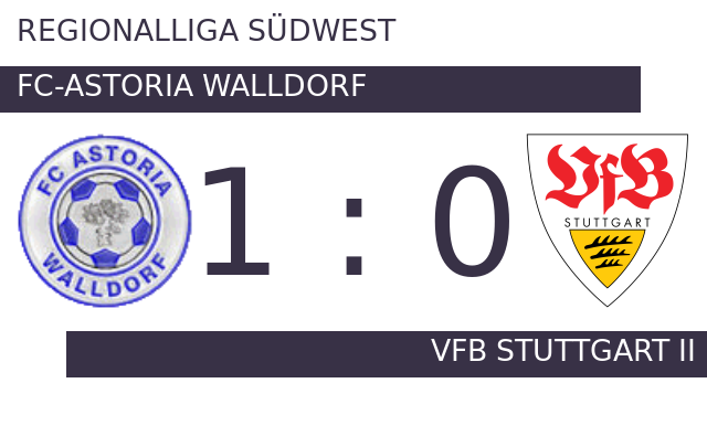 Nach den ersten 45 Minuten ging es für FCA Walldorf und Stuttgart II ohne Torerfolg in die Kabinen. Wenig später kamen Charalampos Babis Drakas und Marco Wolf per Doppelwechsel für Jannis Boziaris und Alou Kuol auf Seiten des VfB II ins Match (64.). Marcel Carl, der für Theodoros Politakis in die Partie kam, sollte die Offensive von FCA beleben (69.). Der verwandelte Strafstoß von Carl brachte Astoria vor 318 Zuschauern nach 90 Minuten mit 1:0 in Führung. Am Ende machte ein Tor den Unterschied zwischen den Gastgebern und dem VfB Stuttgart II aus.