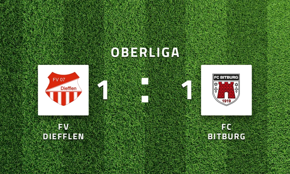 In der zweiten Halbzeit konnten die Bitburger das Tempo der Diefflener nicht über die volle Distanz mitgehen. Die Hausherren wurden stärker und die Gäste fanden nur seltener den erlösenden Gegenangriff. Die Folge: Lukas Feka verkürzte in der 60. Minute auf 1:2, neun weitere Minuten später glich Fabian Poß aus. Der FCB kämpfte und hielt den Kasten bis in die Schlussphase sauber. Auch nach einer Roten Karte (89.) überstanden die Bierstädter die Schlussoffensive des FVD, der sich letztlich mit einem Punkt zufriedengeben musste.