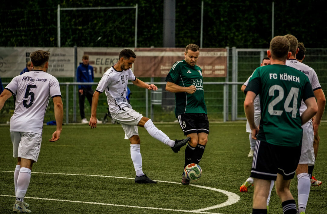 Eine Woche nach der bitteren wie ärgerlichen 6:5-Niederlage in Zewen zeigte der FC Könen vor heimischem Publikum ein anderes Gesicht – zumindest in der Anfangsphase. Imad El-Arja traf in der achten Minute zur Führung der Hausherren, die Lukas Mees (17.) und Marc Fußangel schnell auf 3:0 in die Höhe schraubten. Anschließend schaltete man laut Spielertrainer Marcel Herrig erneut unnötigerweise einen Gang zurück: „Anfangs waren wir sehr gut im Spiel und führten verdient mit 3:0. Danach kam uns wie in den Vorwochen die Spannung abhanden. Das Spiel wurde offener und wir kassierten ein Gegentor. Erst kurz vor Schluss konnten wir mit dem 4:1 alles klarmachen. Es war dann mehr ein Arbeitssieg mit sehr guten Phasen.“