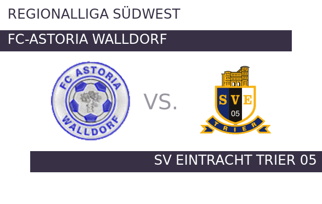 Gegen FC-Astoria Walldorf soll SV Eintracht Trier 05 das gelingen, was den Gästen in den letzten acht Spielen verwehrt blieb – die optimale Punkteausbeute. FCA Walldorf trennte sich im vorigen Match 1:1 von Bahlinger SC. Am vergangenen Freitag ging Eintracht Trier leer aus – 1:2 gegen die Kickers Offenbach. FCA hatte sich im Hinspiel als keine große Hürde für Trier erwiesen und mit 0:3 verloren.