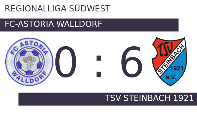 Steinbach stellte mit dem 1:0 in der dritten Minute die Weichen auf Sieg. In Minute neun bejubelte Steinbach das 2:0. Mit dem 3:0 schien die Partie bereits in der 20. Minute mit Steinbach einen sicheren Sieger zu haben. Der Halbzeitpfiff war noch nicht ertönt, als Steinbach seinen vierten Treffer nachlegte (40.). Steinbach schraubte das Ergebnis in der 41. Minute mit dem 5:0 in die Höhe. TSV dominierte das Geschehen in Durchgang eins nach Belieben und schenkte FC-Astoria Walldorf bis zur Pause einen drückenden Rückstand ein. TSV Steinbach 1921 ließ den Vorsprung in der 86. Minute anwachsen. Ballweg (Zwingenberg) pfiff schließlich das Spiel ab, in dem Steinbach bereits in Durchgang eins deutlich gezeigt hatte, dass es nach 90 Minuten nur einen Sieger geben würde.