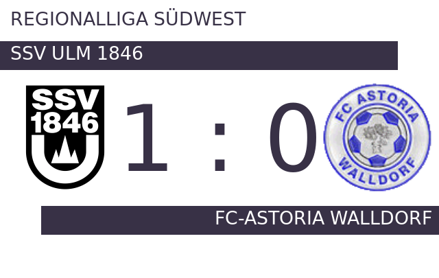 Der SSV Ulm 1846 trug gegen FC-Astoria Walldorf einen knappen 1:0-Erfolg davon. FCA Walldorf erlitt gegen den SSV Ulm 1848 erwartungsgemäß eine Niederlage.