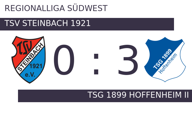 Die Zweitvertretung von TSG 1899 Hoffenheim spuckte TSV Steinbach 1921 in die Suppe und siegte deutlich mit 3:0. Unerwartet und schmerzlich zugleich war die Niederlage für die Hausherren, die sich 1899 Hoffenheim II beugen mussten.