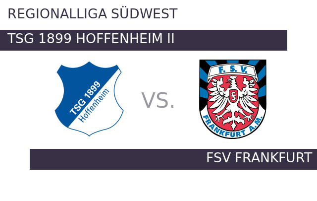 Die Zweitvertretung von 1899 Hoffenheim will die Erfolgsserie von sechs Siegen gegen den FSV ausbauen. TSG 1899 II gewann das letzte Spiel gegen TuS RW Koblenz mit 3:0 und liegt mit 57 Punkten weit oben in der Tabelle. Letzte Woche siegte der FSV gegen VfR Wormatia 08 Worms mit 3:0. Somit nimmt der FSV Frankfurt mit 52 Punkten den vierten Tabellenplatz ein. Im Hinspiel hatte TSG 1899 Hoffenheim II die Nase vorn und feierte einen knappen 2:1-Sieg.