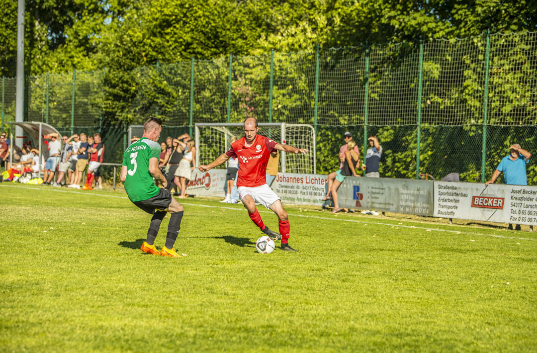 Nach einer Roten Karte für die Hausherren (76.) drängten die Gäste weiter nach vorne. Der entscheidende Treffer der Partie glückte letztlich Nicolas Schmitt. Der etatmäßige Torwart des FC Könen setzte einen Freistoß in der 81. Minute in den Winkel und sorgte damit für den 4:5-Endstand.