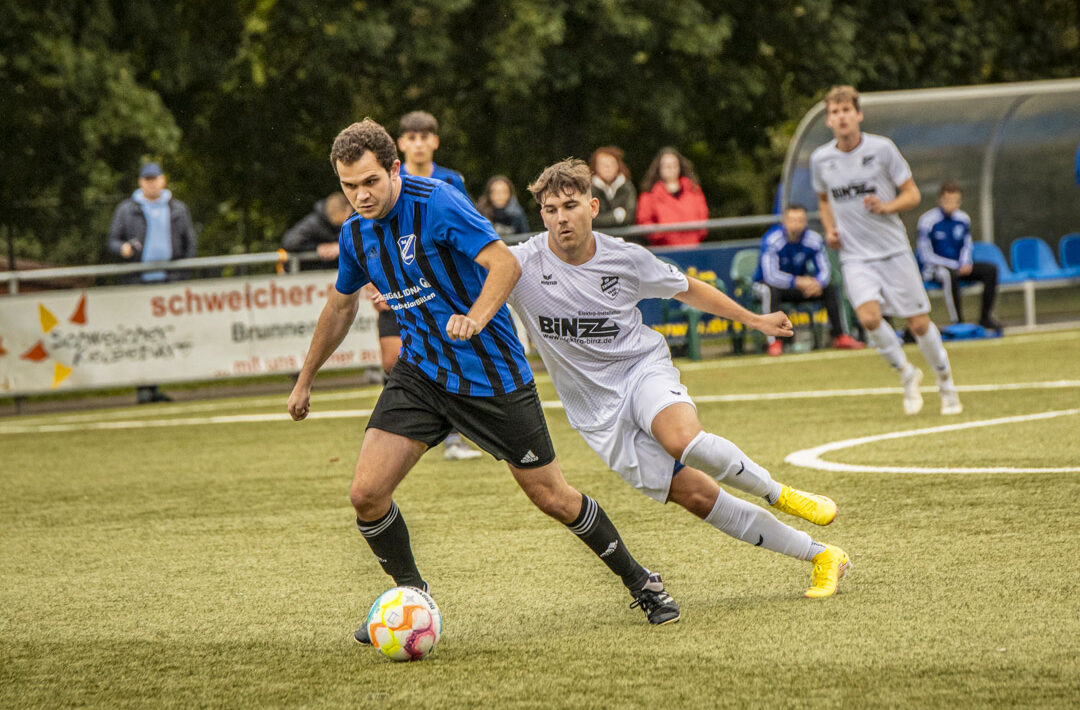 Dabei dauerte es bis zur 37. Minute, als die Mosella durch Leon Roos zur Führung traf. Der hatte aus 20 Metern mit einem satten Distanzschuss in den Giebel für Aufsehen gesorgt. Nach einer Flanke von Julian Müller stand es plötzlich 1:1, als Nico Denzer am zweiten Pfosten stehend einschob (44.). Doch nur eine Zeigerumdrehung später stellte Schweich den alten Abstand wieder her und ging mit einem 2:1 in die Pause. Joshua Rodrigues hatte nach einem Eckball von Lennart Wirz zum 2:1 getroffen. Der war in der 24. Minute für den verletzt ausgefallenen Nico Frick in die Partie gekommen. Nach dem Seitenwechsel brannten die Hausherren ein wahres Offensivfeuerwerk ab und kamen binnen sieben Minuten zu drei Treffern. Pierre Nospers und Kenneth Harrow legten sich jeweils die Bälle zu ihren Toren zum 3:1 und 4:1 (69., 72.) auf, ehe Max Gäbler eine weitere Ecke von Wirz zum 5:1 in die Maschen beförderte (76.). Den Schlusspunkt unter eine reife Leistung legte Nick Stevens, der nach einem Querpass von Noah Quare mit dem 6:1 das halbe Dutzend vollmachte (87.). Mit dem Sieg sind die Schweicher plötzlich auf Rang vier vorgerückt. Trainer Patrick Quary jedenfalls kann damit leben. „Heute haben wir über die kompletten 90 Minuten ein gutes Spiel gemacht. Die erste dicke Chance haben wir noch liegenlassen und es verpasst, schon nach 70 Sekunden das Tor zu machen. Wir haben bis auf den Freistoß aus 20 Metern auch wenig zugelassen. Zum Glück haben wir kurz vor der Halbzeit per Standard mit dem 2:1 eine starke Antwort auf den Ausgleich gefunden. Wir sind im zweiten Abschnitt seriös nach vorne gekommen und haben gefährliche Angriffe gefahren. Es war insgesamt eine runde Sache. Dass wir jetzt Vierter sind, freut uns, ist aber kein Ruhekissen. Denn die Liga ist nach wie vor brutal ausgeglichen.“ Pluwigs Co-Spielertrainer Christopher Monzel suchte nach Erklärungsansätzen nach diesem Debakel. „Bis zur Halbzeit war es ein ausgeglichenes Spiel. Einen psychologischen Knacks lieferte der abermalige Rückstand, nachdem wir kurz zuvor noch das 1:1 erzielt haben und uns schon gedanklich in der Halbzeit wähnten. Wir wollten auf jeden Fall noch mal angreifen, doch mit gefühlt jedem Angriff, der uns nicht gelungen ist, sind wir im Gegenzug jedesmal eiskalt bestraft worden. Nach drei Gegentoren innerhalb sieben Minuten gingen die Köpfe runter – es ging gar nichts mehr. Schweich hat das eiskalt ausgenutzt.“