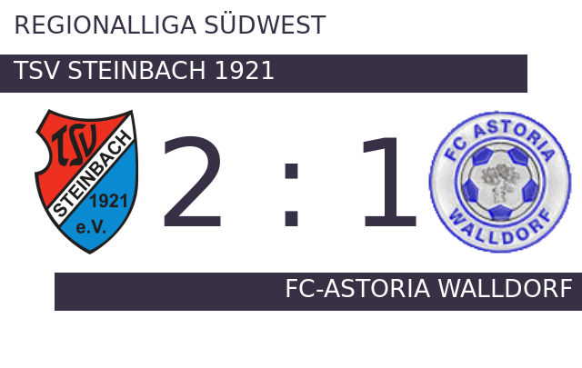 Durch die drei Punkte gegen FC-Astoria Walldorf verbesserte sich Steinbach auf Platz zwei. Die Defensive von TSV (30 Gegentreffer) gehört zum Besten, was die Regionalliga Südwest zu bieten hat. TSV Steinbach 1921 weist in dieser Saison mittlerweile die stolze Bilanz von 19 Erfolgen, acht Punkteteilungen und fünf Niederlagen vor. Steinbach kann zufrieden auf die Endphase schauen, liegt die letzte Niederlage doch schon sieben Spiele zurück.