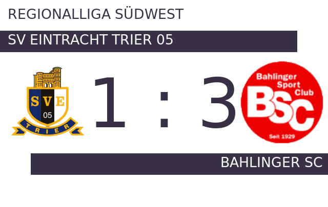 Trier geriet in der 22. Minute ins Hintertreffen. Bahlingen stellte das 2:0 sicher (29.). Bis zur Pause fiel kein weiteres Tor, sodass BSC mit einer Führung in die Kabine ging. Die Heimmannschaft traf etwas später zum 1:3 (79.). Zum Schluss feierte Bahlingen einen dreifachen Punktgewinn gegen SV Eintracht Trier 05.