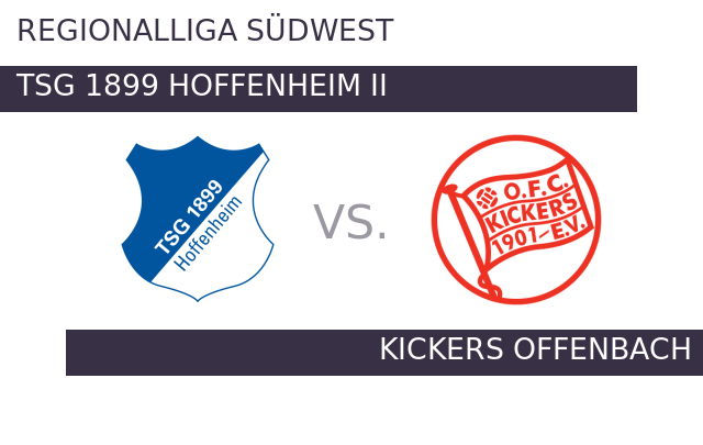 Die Kickers Offenbach will die Erfolgsserie von drei Siegen bei der Reserve von TSG 1899 Hoffenheim ausbauen. 1899 Hoffenheim II musste sich im vorigen Spiel TSG Balingen mit 0:2 beugen. Offenbach muss sich nach dem souveränen Sieg im letzten Spiel nicht verstecken. Das Hinspiel war eine klare Angelegenheit gewesen. Die Offenbacher Elf hatte mit 5:2 gesiegt.