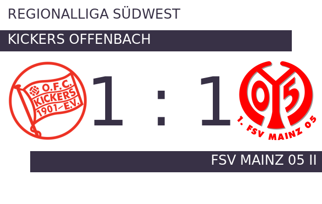 Das 1:0 in der 38. Minute brachte den FSV Mainz 05 II vermeintlich auf die Siegerstraße. Mit einem Tor Vorsprung für Mainz 05 II ging es für die beiden Teams in die Halbzeitpause. Die Kickers Offenbach markierte in der 53. Minute den Ausgleich. Am Ende stand ein Teilerfolg für beide Mannschaften. Offenbach und der FSV Mainz 05 II spielten unentschieden.