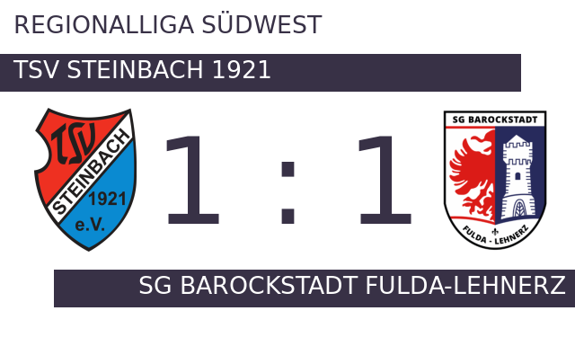 Das 1:0 in der 18. Minute brachte TSV Steinbach 1921 vermeintlich auf die Siegerstraße. In Minute 32 erzielte SG Barockstadt Fulda-Lehnerz den Ausgleich. Auch in der zweiten Halbzeit gelang es TSV nicht, aus dem Heimvorteil Kapital zu schlagen. So blieb es auch nach weiteren 45 Minuten beim 1:1-Remis.