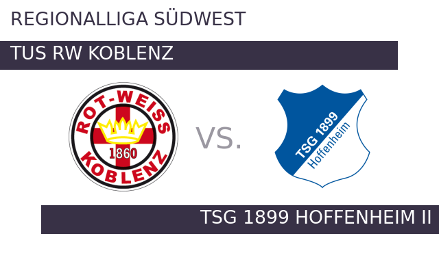 TuS RW Koblenz sollte vor dem kommenden Gegner TSG 1899 Hoffenheim II gewarnt sein, spielte dieser doch zuletzt wie aus einem Guss. Zuletzt kam TuS RW Koblenz zu einem 2:1-Erfolg über VfR Wormatia 08 Worms. 1899 Hoffenheim II siegte im letzten Spiel gegen den FSV Mainz 05 II mit 2:1 und liegt mit 54 Punkten weit oben in der Tabelle. Das Hinspiel ging 3:1 zugunsten der Zweitvertretung von TSG 1899 aus.