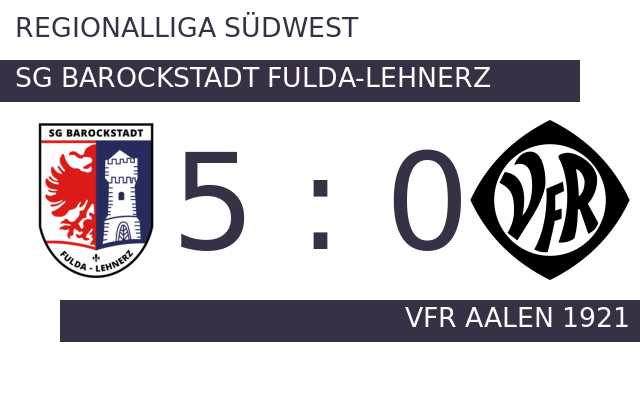 In der 24. Minute ging SG Barockstadt Fulda-Lehnerz in Führung. Der VfR Aalen geriet deutlicher in Rückstand, als SG Barockstadt Fulda-Lehnerz auf 2:0 erhöhte (30.). Nach dem souveränen Auftreten von SG Barockstadt Fulda-Lehnerz überraschte es kaum einen Zuschauer, dass zur Pause eine deutliche Führung stand. Mit dem 4:0 für SG Barockstadt Fulda-Lehnerz war das Spiel eigentlich schon entschieden (51.). SG Barockstadt Fulda-Lehnerz gelang in den Schlussminuten noch ein weiterer Treffer (81.). Am Ende fuhr SG Barockstadt Fulda-Lehnerz einen deutlichen Sieg ein. Dabei demonstrierte SG Barockstadt Fulda-Lehnerz bereits in Hälfte eins großes Leistungsvermögen, als man den VfR Aalen 1921 in Grund und Boden spielte.