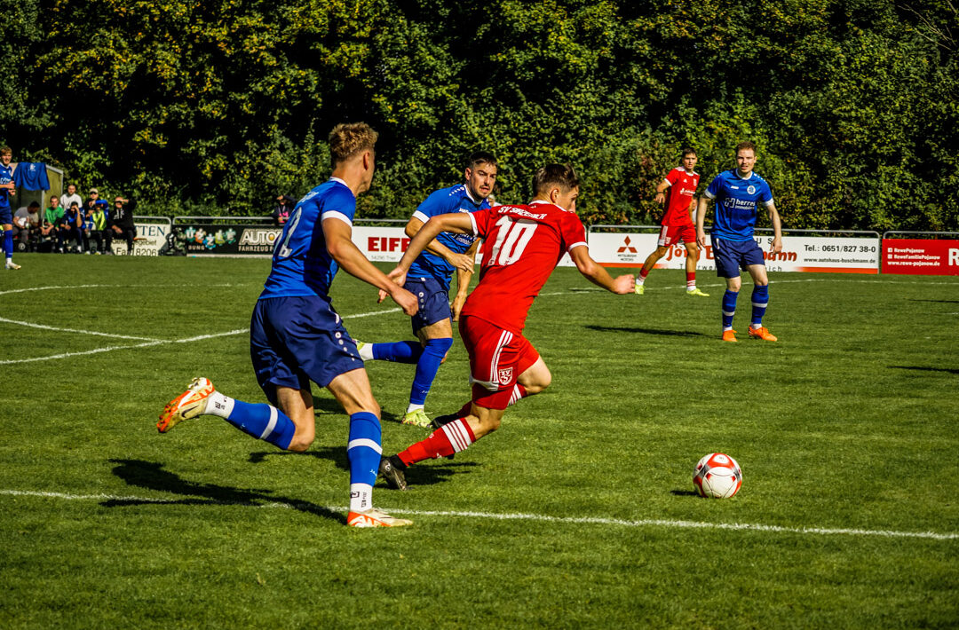 Auf der anderen Seite blieb der SV Sirzenich auch im neunten Saisonspiel ungeschlagen und damit erster Verfolger von Ligaprimus Tarforst. Denn die Partie auf dem Teppich von Berndorf endete torlos. Hatte Aufsteiger Wiesbaum im ersten Abschnitt durch von Jannik Hennes, Simon Bleser und Leon Bauer gute Möglichkeiten, in Führung zu gehen, so bewahrte SG-Torwart Pascal Trierscheid die Hausherren in Eins-gegen-eins-Situationen gegen Robin Esser und Ibrahim Almoussa vor einem Rückstand. Die Möglichkeit zum Sieg besaßen jedoch die noch immer ungeschlagenen Gäste, als Kevin Walter nach Querpass von Bastian Neises alleinstehend das leere Tor nicht traf. „Das 0:0 ist leistungsgerecht, wir nehmen den Punkt gerne mit. Man darf nicht vergessen, dass wir gegen den Tabellenzweiten gespielt und unser Tor sauber gehalten haben“, kommentierte Wiesbaums Spielertrainer Marco Michels. Sirzenichs Trainer Till Schweitzer bestätigte die Aussage seines Trainerkollegen aus Wiesbaum und sprach ebenso von einem „leistungsgerechten Unentschieden gegen eine wie erwartet griffige und kompakte Wiesbaumer Mannschaft. Wir haben gesehen, dass sie nicht zu unrecht erst acht Gegentore kassiert haben. Allerdings hatten wir in den letzten fünf Minuten zwei, drei gute Einschussmöglichkeiten. Wiesbaum hat es gut verteidigt und sich den Punkt redlich verdient. Bei uns haben die Zielstrebigkeit in der Box und der letzte Wille gefehlt. Dennoch freuen wir uns darüber, dass wir auch nach neun Spielen immer noch ohne Niederlage dastehen.“