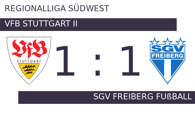Die Reserve des VfB Stuttgart und SGV Freiberg Fußball teilten sich an diesem Spieltag die Punkte. Das Match endete mit einem 1:1. Die Vorzeichen hatten auf Sieg zugunsten von Stuttgart II gestanden. Die 90 Minuten zeigten jedoch, dass der VfB II der Favoritenrolle nicht gerecht wurde. Im Hinspiel hatten sich beide Mannschaften in Sachen Punkteausbeute nichts getan und je einen Zähler geholt. Das Resultat hatte 2:2 gelautet.
