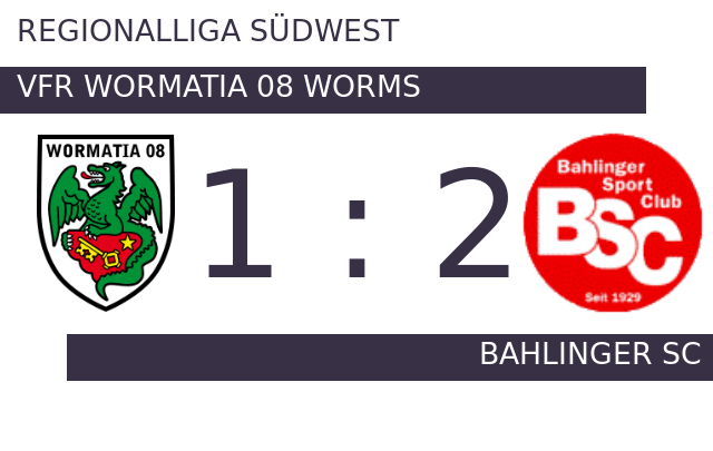 Das 1:0 in der 20. Minute brachte Worms vermeintlich auf die Siegerstraße. In der 31. Minute verhinderte die Hintermannschaft von Wormatia Worms den Gegentreffer von Bahlinger SC nicht, sodass die Partie nun wieder ausgeglichen war. Zur Pause stand ein Unentschieden, und für beide Mannschaften war noch alles drin. Bahlingen markierte das 2:1 (82.). Schließlich sprang für BSC gegen VfR Wormatia 08 Worms ein Dreier heraus.