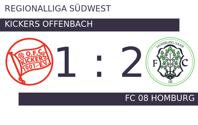 Nach den ersten 45 Minuten ging es für Offenbach und FCH ohne Torerfolg in die Kabinen. Der Gastgeber brach den Bann in der 73. Minute und markierte die Führung. FC Homburg brachte das Netz in der 83. Minute für den Ausgleich zum Zappeln. FC 08 Homburg versenkte die Kugel in der 86. Minute zum 2:1. Am Schluss siegte FC Homburg gegen Offenbach.