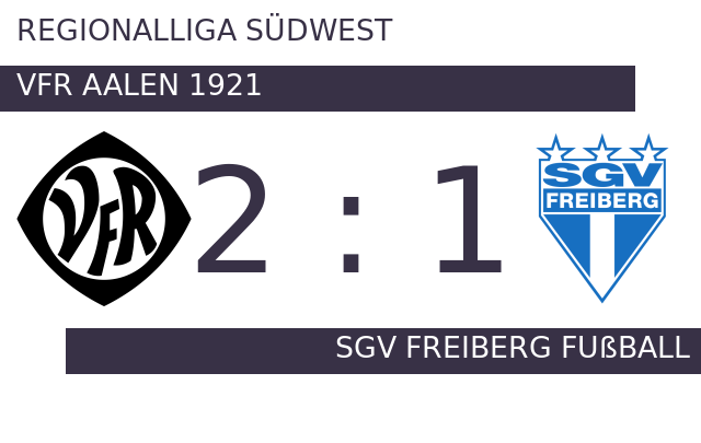 Der VfR Aalen 1921 stellte mit dem 1:0 in der 31. Minute die Weichen auf Sieg. SGV Freiberg Fußball traf in der 34. Minute zum Ausgleich. Zur Halbzeit war die Partie noch vollkommen offen. Remis lautete das Zwischenresultat. SGV Freiberg Fußball musste den Treffer zum 2:1 hinnehmen (82.). Am Schluss gewann der VfR gegen SGV Freiberg Fußball.