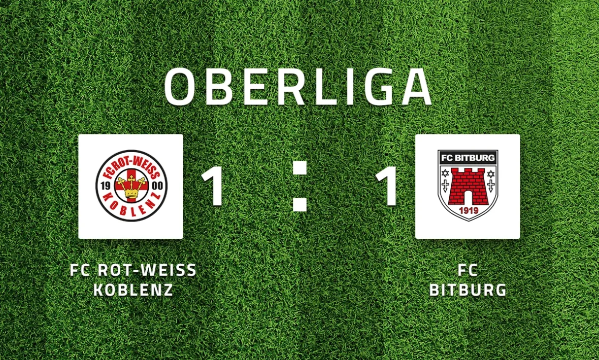 Für den FC Bitburg begann die Partie gegen den FC Rot-Weiss Koblenz nicht wie geplant. Bereits nach neun Minuten musste Janik Faldey das Feld räumen und rund zehn Minuten später nutzte Randy Manu Gyamenah ein Missverständnis in der FCB-Hintermannschaft zur Koblenzer Führung. Der FCK blieb im Anschluss im Spiel und war die spielbestimmende Mannschaft. Die Gäste kämpften sich jedoch zurück und gaben die Partie alles andere als auf. Das zeigte sich auch in der zweiten Halbzeit, als die Bierstädter immer öfter den Weg nach vorne suchten. Der Anschlusstreffer blieb zunächst aus, doch auch auf der Gegenseite verpassten es die Hausherren, ihre Umschaltmomente in Tore umzumünzen. So blieb es bin in die Schlussminuten bei der knappen 1:0-Führung der Rot-Weissen. Erst in der 89. Minute fand ein Steckpass Arthur Hartwick, der für den FCB zum 1:1-Endstand ausglich und den Gästen damit einen Punkte sicherte.