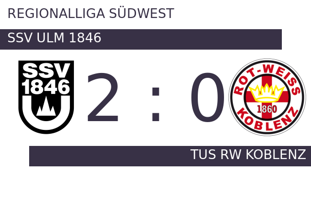 Nach den ersten 45 Minuten ging es für Ulm und TuS RW Koblenz ohne Torerfolg in die Kabinen. Der Tabellenführer ging in Minute 57 in Führung. Der SSV Ulm 1848 erzielte in der 74. Minute das 2:0. Unter dem Strich verbuchte der SSV gegen TuS RW Koblenz einen 2:0-Sieg.