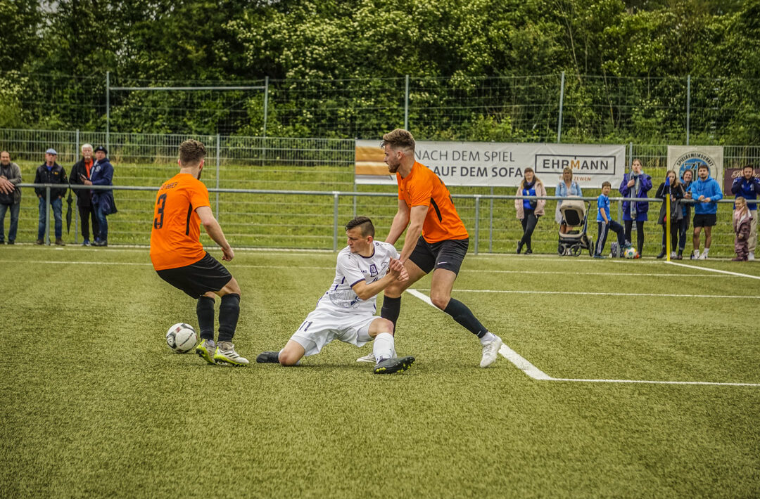 Sie hat sich mit den uns zur Verfügung stehenden Mitteln gut gewehrt“, sah Ahbachs Coach Roger Stoffels einen engagierten, aber glücklosen Auftritt seiner Mannschaft. Denn erst in der Nachspielzeit brachte die SG Ruwertal den zu hoch ausgefallenen Sieg in trockene Tücher. In einer umkämpften, von intensiven Zweikämpfen geprägten Partie ohne die zunächst ganz großen Höhepunkte entführten die Gäste, wie schon im Vorjahr mit 4:3, auch am Samstagabend die kompletten Punkte aus der Eifel. Der erst kurz zuvor eingewechselte Daniel Lentes reagierte nach einer Ecke am zweiten Pfosten stehend am schnellsten und traf mit einem abgefälschten Schuss für die SGR zur Führung (73.). Nach dem ein Kopfball von Ahbachs Tom Schlösser, der mit vereinten Kräften gerade so noch von der Linie gekratzt wurde (90.), entschieden Jannis Hoffmann (90.+3) mit einem eher harmlosen Distanzschuss – TuS-Keeper Justin Hellenthal wähnte den Schuss im Aus – sowie Ruben Herres nach toller Vorarbeit von Karsten Willems mit der Brust (90.+6) eine ansonsten ausgeglichene Partie. Ruwertals Trainer Benny Leis sah eine Top Teamleistung. „Bis zur Führung blieb es ein offener Schlagabtausch, weil wir es zuvor versäumt hatten, die optischen Vorteile in Tore umzuwandeln. Bis ins letzte Drittel haben wir uns gut durch kombiniert, doch die letzte Entschlossenheit fehlte. Es war eine sehr starke kämpferische Leistung. Der Sieg ist verdient, wenn auch zu hoch ausgefallen.“ Der TuS Ahbach habe durch lange Bälle immer wieder Chancen kreiert, doch seine Mannschaft habe sich mit Hingabe in alle Schüsse geworfen und leidenschaftlich verteidigt, unterstrich Leis. Stoffels hingegen meinte: „In der Phase, in der wir auf Dreierkette umgestellt haben, haben wir zwei Tore kassiert. Ruwertal war maximal effizient, das hat den Unterschied gemacht. Nach dem 0:1 haben wir allen Mut zusammengekratzt, sie hinten reinzudrängen, doch wir haben es leider nicht geschafft, den Abwehrriegel zu knacken.“
