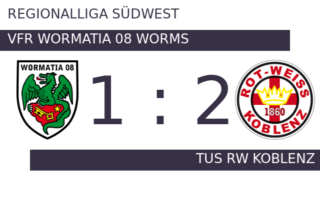 Thilo Töpken besorgte vor 987 Zuschauern das 1:0 für TuS RW Koblenz. Die passende Antwort hatte Jannik Marx parat, als er in der 28. Minute zum Ausgleich traf. Per Elfmeter erhöhte Töpken in der 42. Minute seine Torausbeute an diesem Tag auf zwei Treffer – 2:1 für TuS RW Koblenz. Die Pausenführung des Tabellenletzten fiel knapp aus. In der Pause stellte Worms personell um: Per Doppelwechsel kamen Alexander Shehada und Elias Holzemer auf den Platz und ersetzten Nicola Köhler und Stefano Maier. Schließlich holte TuS RW Koblenz gegen den direkten Abstiegskonkurrenten die Big Points und feierte einen 2:1-Sieg.