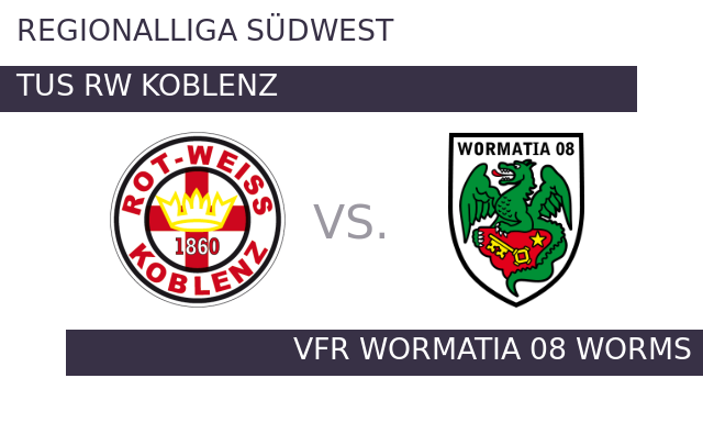 TuS RW Koblenz will wichtige Punkte im Kellerduell gegen VfR Wormatia 08 Worms holen. TuS RW Koblenz musste sich im vorigen Spiel SV Eintracht Trier 05 mit 1:2 beugen. Am vergangenen Spieltag verlor Wormatia Worms gegen TSG 1899 Hoffenheim II und steckte damit die siebte Niederlage in dieser Saison ein.