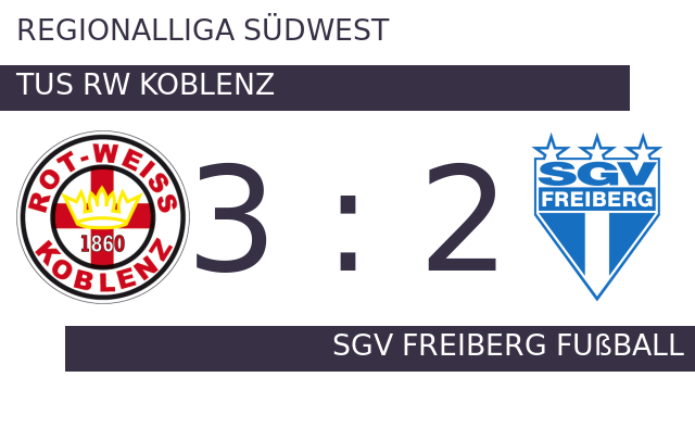 TuS RW Koblenz und SGV Freiberg Fußball boten den Zuschauern zahlreiche Tore und trennten sich zum Schluss mit 3:2. In einem Spiel zweier formal gleich starker Gegner machte am Ende lediglich ein Tor den Unterschied aus. Im Hinspiel war es beim 0:0 keiner der beiden Mannschaften gelungen, einen Treffer zu erzielen.
