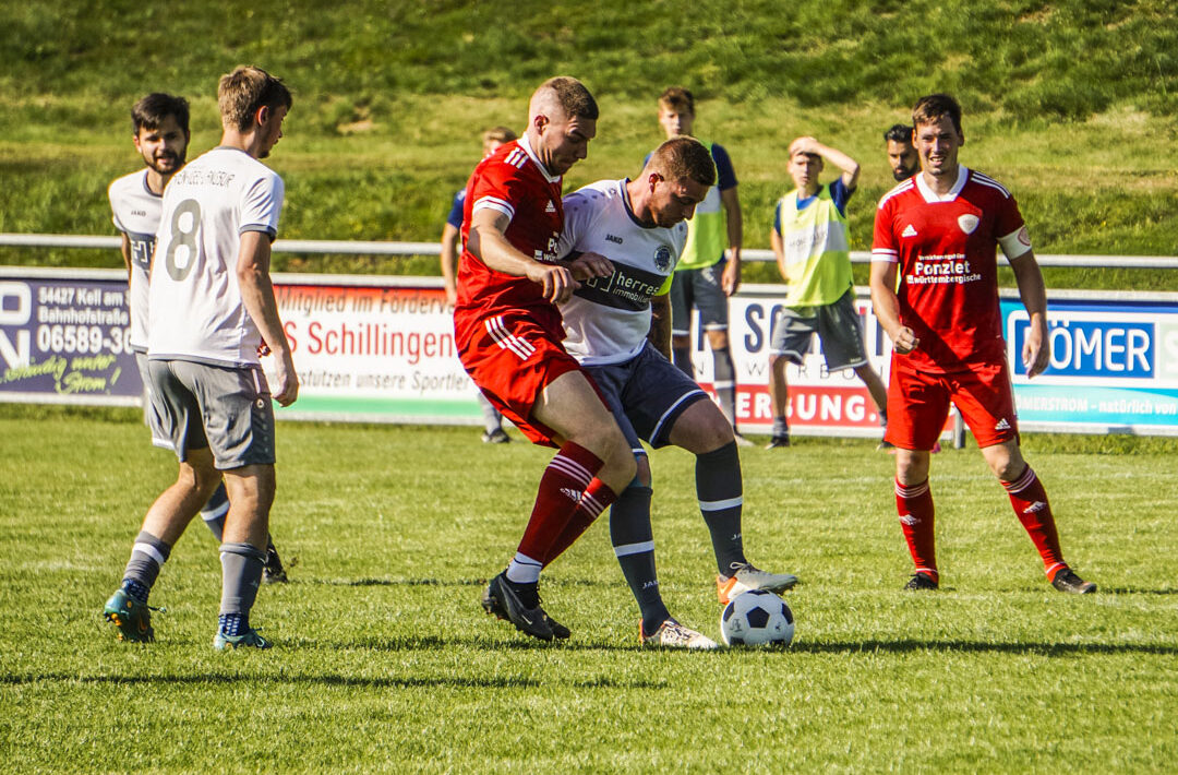 VfL-Trainer Marco Neumann verstand die Welt nicht mehr. „Wir haben jetzt zum fünften Mal von den zwölf Spielen, die wir bestritten haben, ein Spiel in der Nachspielzeit verloren. Dass wir jetzt auch in Schillingen wieder mit leeren Händen dastehen, ist schon extrem bitter und tut auch brutal weh. Dabei hatten wir mit Abstand den jüngsten Kader aller Zeiten am Start, mit 21,7 Jahren. Null Vorwurf an Arian Zylfijaj, der in der 86. Minute nach einem Foul im Mittelfeld die Gelb-Rote Karte sieht und wir die letzten Minuten in Unterzahl spielen müssen. Wir haben eine richtig gute erste halbe Stunde gespielt, trafen nach zwei Minuten schon den Pfosten, auch Nico Franzens Schuss geht nur hauchdünn am Tor vorbei. Schillingen stand tief, wir hatten mehr Ballbesitz. Schillingen war in der ersten Halbzeit nur über ein, zwei Standards gefährlich. So haben wir auch Glück, dass wir mit 1:0 in die Halbzeit gehen. Mit Beginn der zweiten Halbzeit war Schillingen überlegen, traf einmal die Latte. Ab der 80. Minute hatten wir Chancen im Minutentakt zur Entscheidung gehabt, doch es sollte nicht sein. So passiert, was passiert ist: Durch fehlende Aufmerksamkeit und Konzentrationsmängel bekommen wir zwei Situationen nicht gut verteidigt. So steht es nach 95 Minuten 2:1 für den Gegner“. Schillingens Trainerfuchs Gerd Morgen konstatierte, ein „völlig beklopptes Spiel gesehen zu haben.“ Luca Kirschweng hatte den VfL in der 18. Minute nach einem Steckpass von Elias Blasius in Front gebracht. Nach Balleroberung von Timo Jost und dessen Flanke ins Zentrum vollendete Tobias Anell diese Aktion mit einem Volleyschuss zum späten 1:1 (89.). Als mit der wohl letzten Aktion ein Freistoß von der Mittellinie von Maximilian Heib ins Zentrum segelte, der Ball von zwei VfL-Verteidigern unterlaufen wurde, stand Jan Zender goldrichtig und markierte den viel umjubelten 2:1-Siegtreffer. „Wir haben das Spiel in den letzten Minuten komplett auf links gedreht. Der Sieg ist sehr glücklich zustande gekommen. Mir tut der VfL auch ein bisschen leid. Doch wir haben in dieser Saison auch unsäglich viele Torchancen vergeben und auch heute wieder etliche Hochkaräter liegen lassen. Das war schon Wahnsinn. Glücklicherweise konnten wir unsere konditionellen Defizite mit den fünf Einwechslungen ausgleichen. Der Sieg führt uns ein kleines Stück zu unserem angestrebten Ziel, dem Klassenerhalt“, war TuS-Trainer Gerd Morgen die Erleichterung deutlich anzumerken.