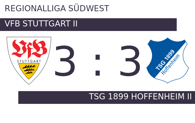 Im Spiel der Zweitvertretung des VfB Stuttgart gegen die Reserve von TSG 1899 Hoffenheim gab es Tore am laufenden Band. Am Ende teilten sich sich beide Kontrahenten die Punkte beim Stand von 3:3.