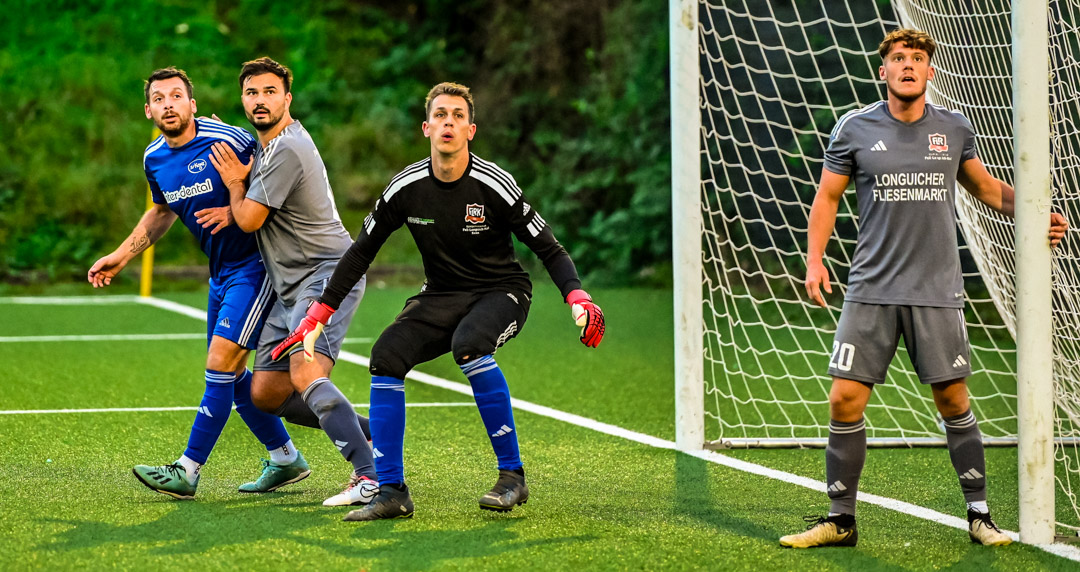 „Das 2:2 geht so auch in Ordnung. In der ersten Halbzeit war Kenn die bessere Mannschaft, wir in der zweiten. Kenn agierte sehr effizient, wir dagegen haben es nicht geschafft, in unsere Abläufe zu kommen. Das Spiel war sehr intensiv und von zahlreichen Zweikämpfen geprägt. In der zweiten Halbzeit haben wir unser Anlaufverhalten geändert. Die Reaktion auf das 0:1 war dann echt gut. Ich muss der Mannschaft ein Riesenkompliment aussprechen, weil sie nach zwei Rückständen zurückgekommen ist bei den hohen Temperaturen. Kurz vor Schluss hatten wir durch Aniel Oliveira noch einen Pfostenschuss, doch das 3:2 wäre des Guten auch zu viel gewesen“, sprach VfL-Trainer Marco Neumann von einem leistungsgerechten Resultat. Die Vereinigten aus Kenn, Fell, Riol und Longuich gingen 16 Sekunden nach Wiederbeginn in Führung. Nach eigenem Anstoß hatte Kenns Carsten Reis den Braten eines zu kurz geratenen Rückpasses gerochen und einen von seinem Bruder Nico an den Pfosten gesetzten Ball abstauben können (46.). Der VfL versteckte sich nicht und kam nur vier Minuten danach zum 1:1-Ausgleich. Nach einem Steckpass von Elias Blasius erzielte Jon Rollo mit einem Schlenzer gegen die Laufrichtung von Torwart Christian Weingärtner aus 16 Metern den Ausgleich (50.). Nach wiederum eigenem Freistoß verlor der VfL den Ball und als es über Nico Reis schnell ging, der einen langen Ball auf seinen Bruder Carsten spielte und dieser alleinstehend cool blieb, stand es nach einer Stunde 1:2. Doch die Heiligkreuzer schlugen ein zweites Mal zurück. Nach einer Seitenverlagerung von Noah Laros auf Mats Dahlmann gelang es Oliveira, die scharf nach innen gebrachte Flanke ins Netz zu schieben – 2:2 (65.). Wie Neumann durchblicken ließ, sei auch Kenns Co-Trainer Louis Welter zufrieden gewesen. „Kenn hat auch ohne seinen urlaubenden Trainer Andreas Schneider sehr diszipliniert und konzentriert gespielt. Carsten Reis ist natürlich ein absoluter Ausnahmespieler, der eine unglaubliche Ruhe vor dem Tor besitzt. Kenn agierte laufstark und kompakt im Mittelfeld“, hatte auch VfL-Trainer Neumann einen starken Gegner gesehen.