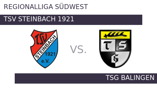 TSV Steinbach 1921 fordert im Topspiel TSG Balingen heraus. Das letzte Ligaspiel endete für Steinbach mit einem Teilerfolg. 0:0 hieß es am Ende gegen den VfR Aalen 1921. Zuletzt kam Balingen zu einem 2:1-Erfolg über den SSV Ulm 1846. Im Hinspiel der beiden Kontrahenten hatte TSV ein Tor mehr erzielt und mit dem 3:2 so das bessere Ende für sich.