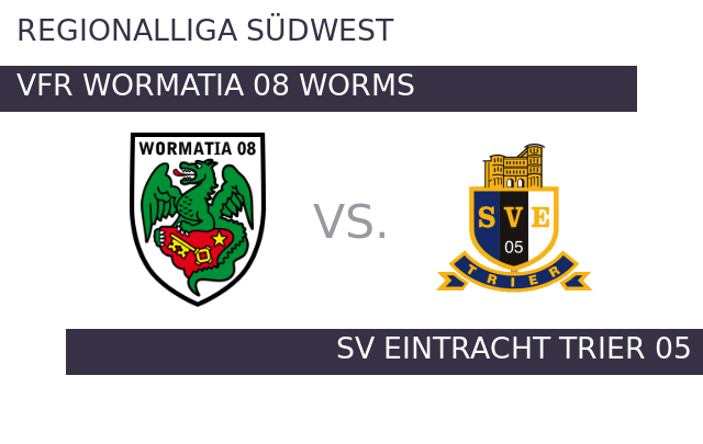 Gegen Eintracht Trier soll Wormatia Worms das gelingen, was dem VfR Wormatia in den letzten zwölf Spielen verwehrt blieb – die optimale Punkteausbeute. Zuletzt spielte Worms unentschieden – 2:2 gegen TSV Steinbach 1921. Zwar blieb Trier nun seit 15 Partien ohne Sieg, aber gegen SG Barockstadt Fulda-Lehnerz trennte man sich zuletzt wenigstens mit einem 2:2-Remis. Im Hinspiel hatte SV Eintracht Trier 05 einen deutlichen 3:0-Sieg verbucht.