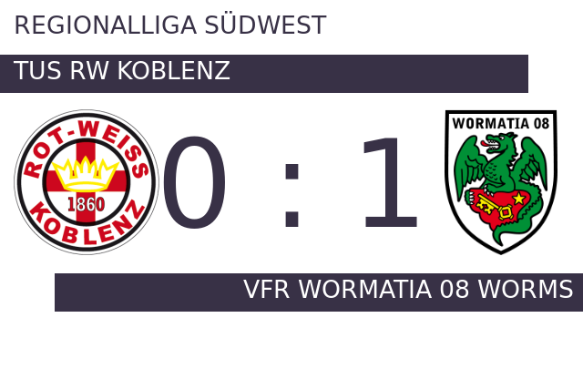 Nach den ersten 45 Minuten ging es für TuS RW Koblenz und Worms ohne Torerfolg in die Kabinen. In der 49. Minute traf VfR Wormatia 08 Worms zum ersten Mal ins Schwarze. Schließlich holte Wormatia Worms gegen den direkten Abstiegskonkurrenten die Big Points und feierte einen 1:0-Sieg.